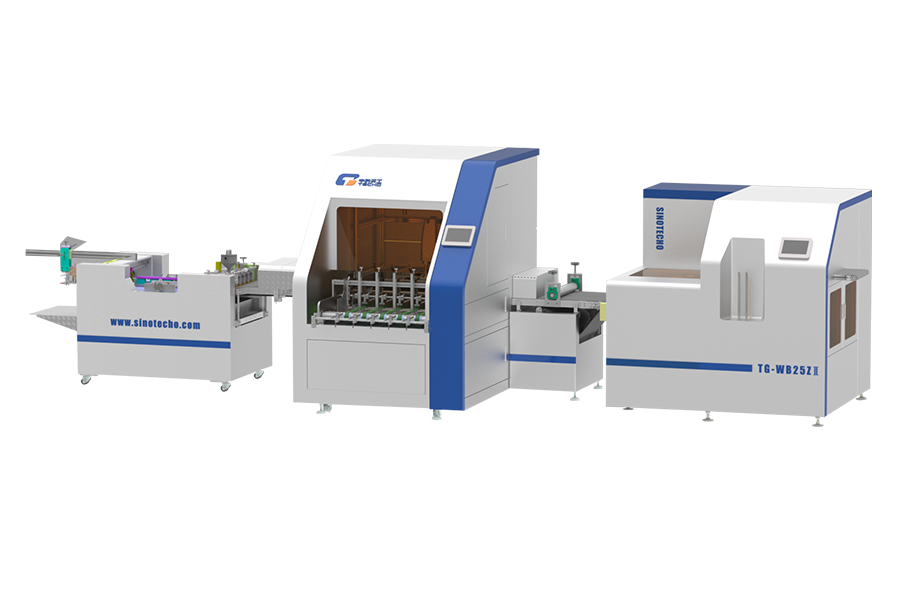 TG-WB25Z 型全自動(dòng)酒盒制盒機(jī),專(zhuān)業(yè)用于生產(chǎn)高檔酒包裝盒、抽屜盒、精裝書(shū)本套殼、立體式紙盒包裝等設(shè)備。該設(shè)備生產(chǎn)線可適用于各包裝行業(yè),如喜糖盒、電子產(chǎn)品包裝、高檔鞋盒、護(hù)膚品盒、茶葉盒、書(shū)套封面、CD/DVD套殼等。該機(jī)性能可靠,采用PLC控制,觀點(diǎn)跟蹤定位,并選用觸摸人機(jī)界面等,完美實(shí)現(xiàn)全自動(dòng)化智能生產(chǎn)。本機(jī)自動(dòng)上膠、自動(dòng)烘干、自動(dòng)成型,有效地代替人工生產(chǎn),大大地提高生產(chǎn)企業(yè)生產(chǎn)效率與禮盒成型質(zhì)量。